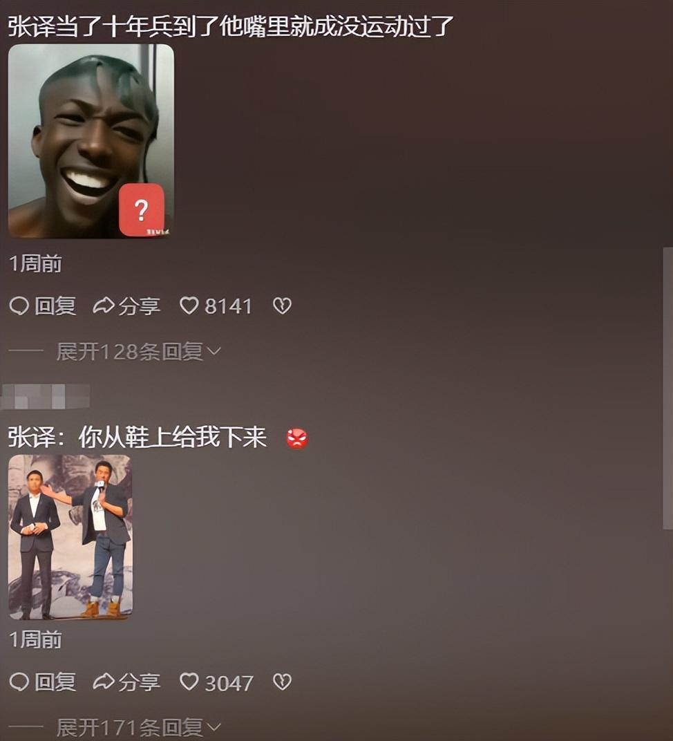 当兵10年的张译默不作声,而只演过“军人”的吴京却不断得意自夸,这样的场面十分滑稽。