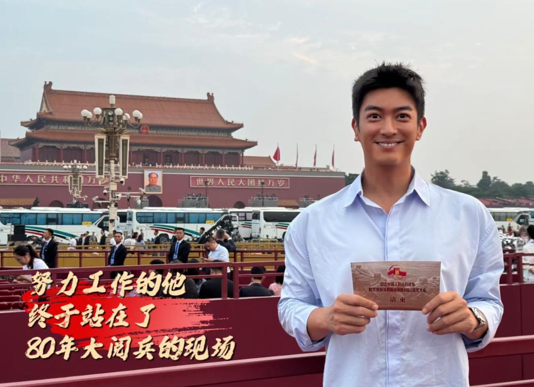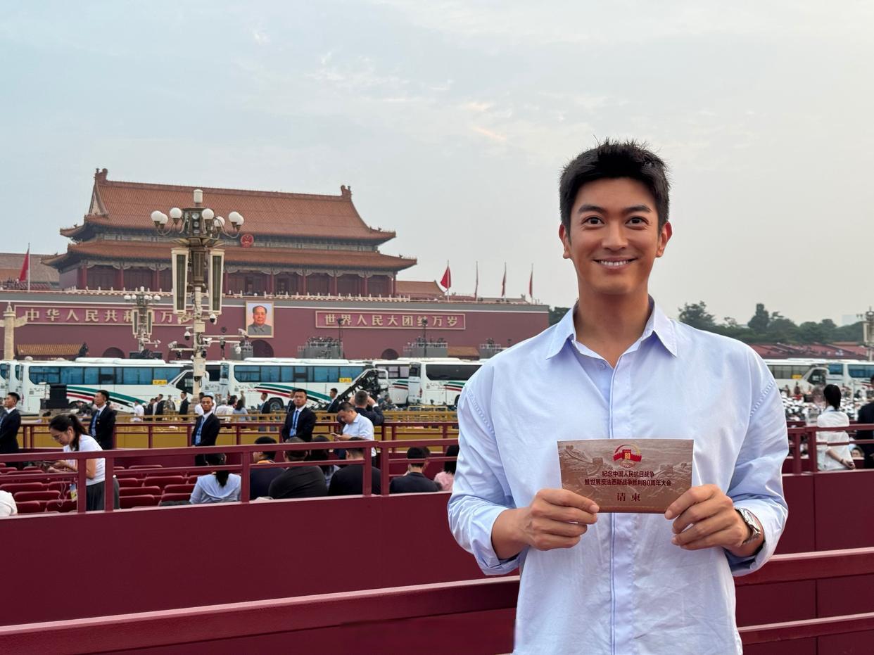 “今天的天安门格外庄严神圣,我怀着无比激动的心情期待着接下来的活动。祝福祖国,祖国万岁!和平万岁!”