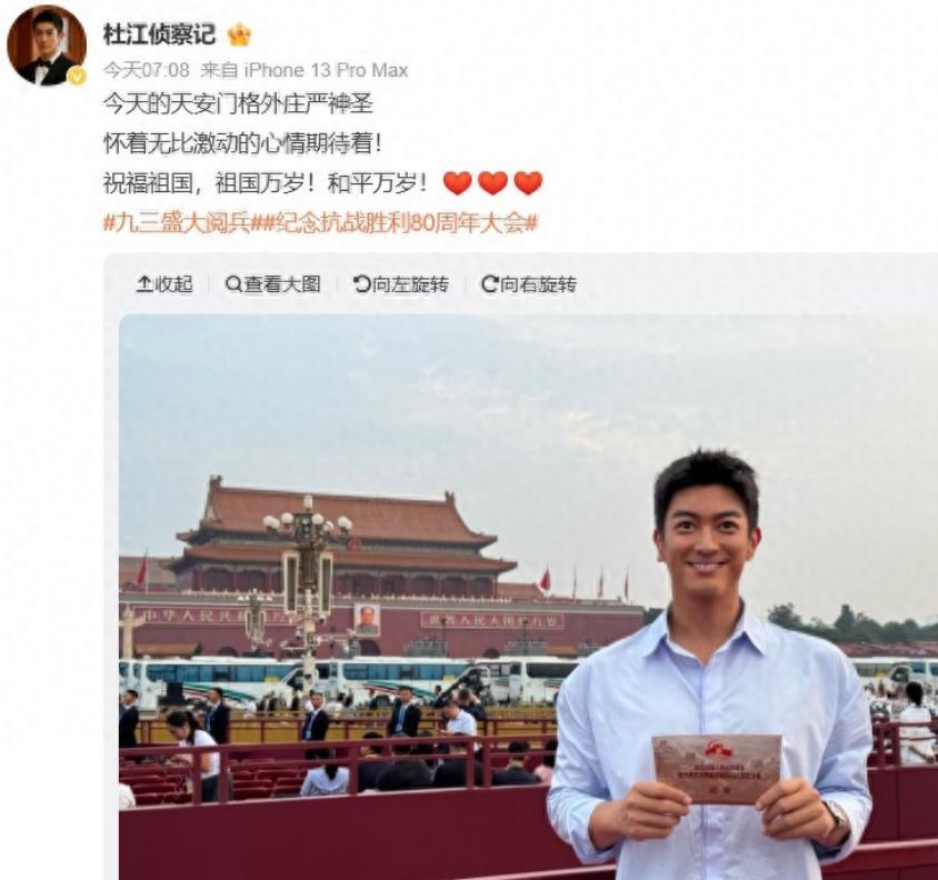 杜江自己也是激动不已。收到邀请后,他迫不及待地在社交平台上晒出了自己受邀的照片,照片中的他笑容满面,难掩内心的喜悦。